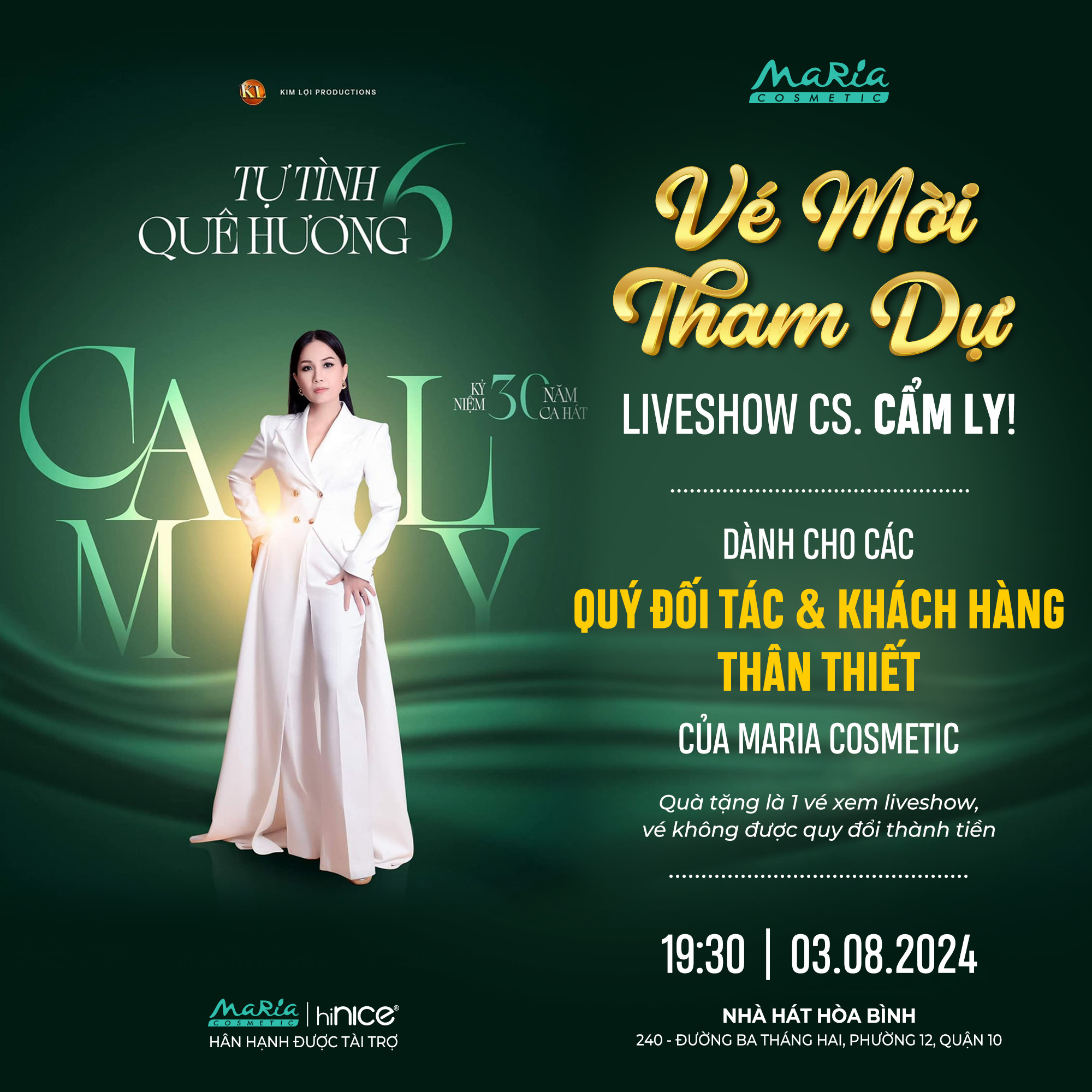 CHỈ CÓ TẠI MARIA COSMETIC - TẶNG VÉ LIVESHOW TỰ TÌNH QUÊ HƯƠNG 6 CỦA CS. CẨM LY