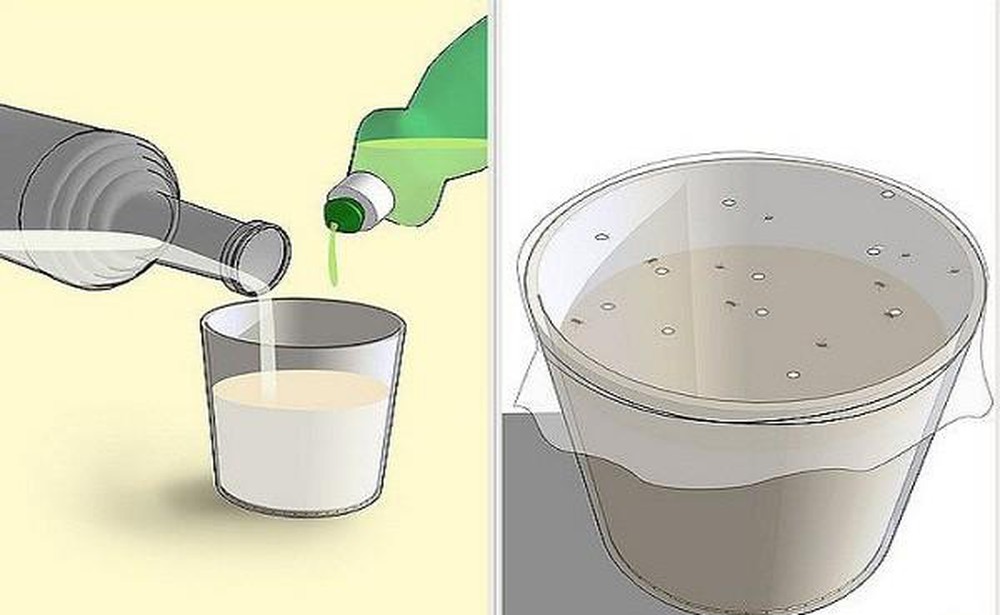 Trộn hai hay ba giọt nước rửa chén vào một bát giấm trắng và để nó ở những nơi có nhiều ruồi. Mùi giấm sẽ thu hút ruồi và xà phòng sẽ là "bẫy" ngăn cản nó bay lên khỏi mặt nước. Còn đối với ruồi giấm, bạn lấy nước rửa chén mùi trái cây cho vào bát giấm. Phú túi bóng lên miệng bát, đục lỗ sao cho ruồi có thể bay vào được. Chỉ cần để như vậy ruồi sẽ bị thu hút và chết trong đó.