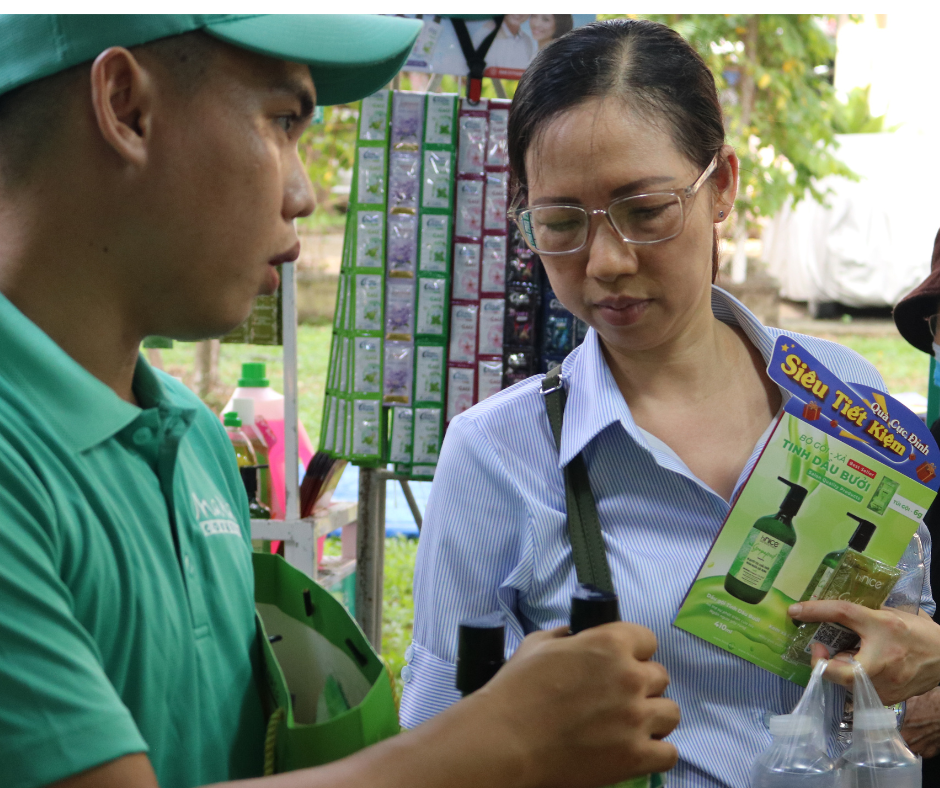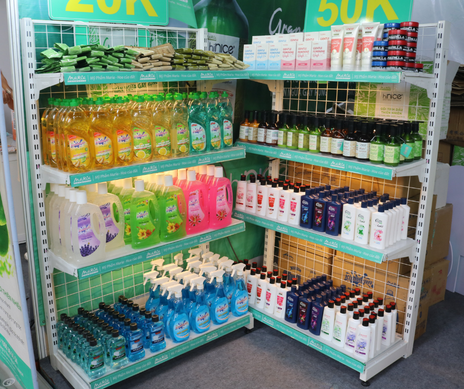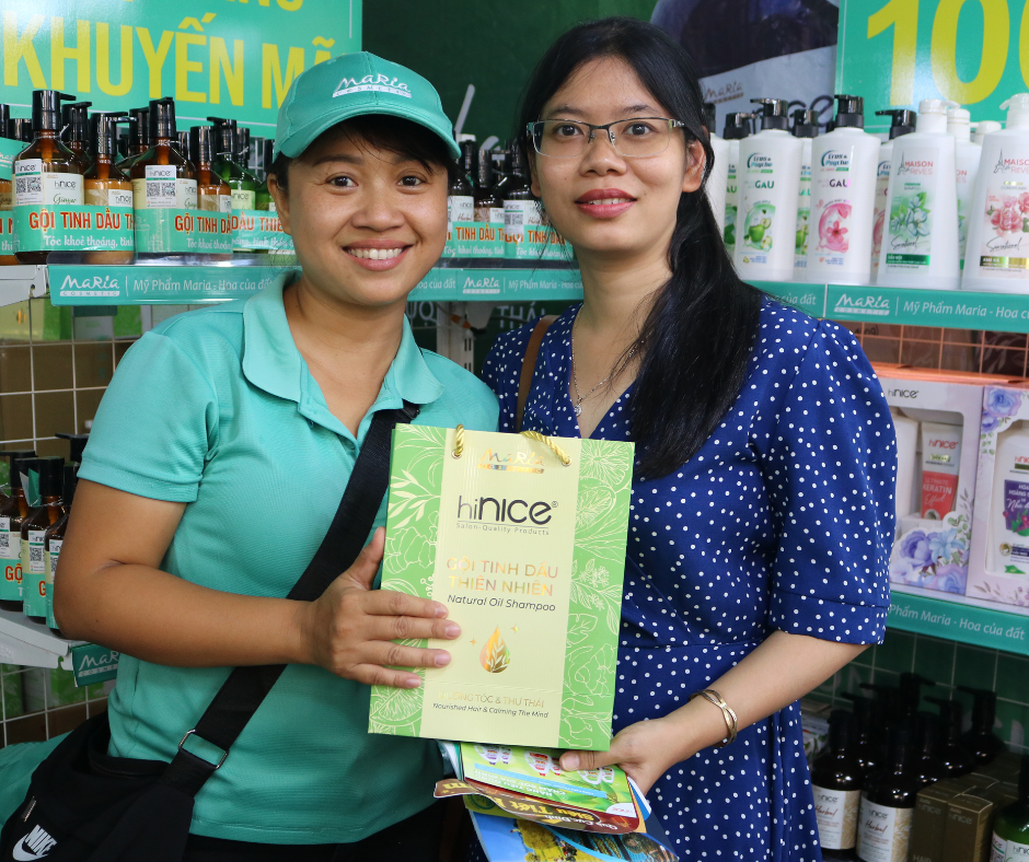 Mỹ Phẩm Maria đem đến phiên chợ rất nhiều mặt hàng chủ lực của công ty, tiêu biểu như bộ gội-xả hiNICE.