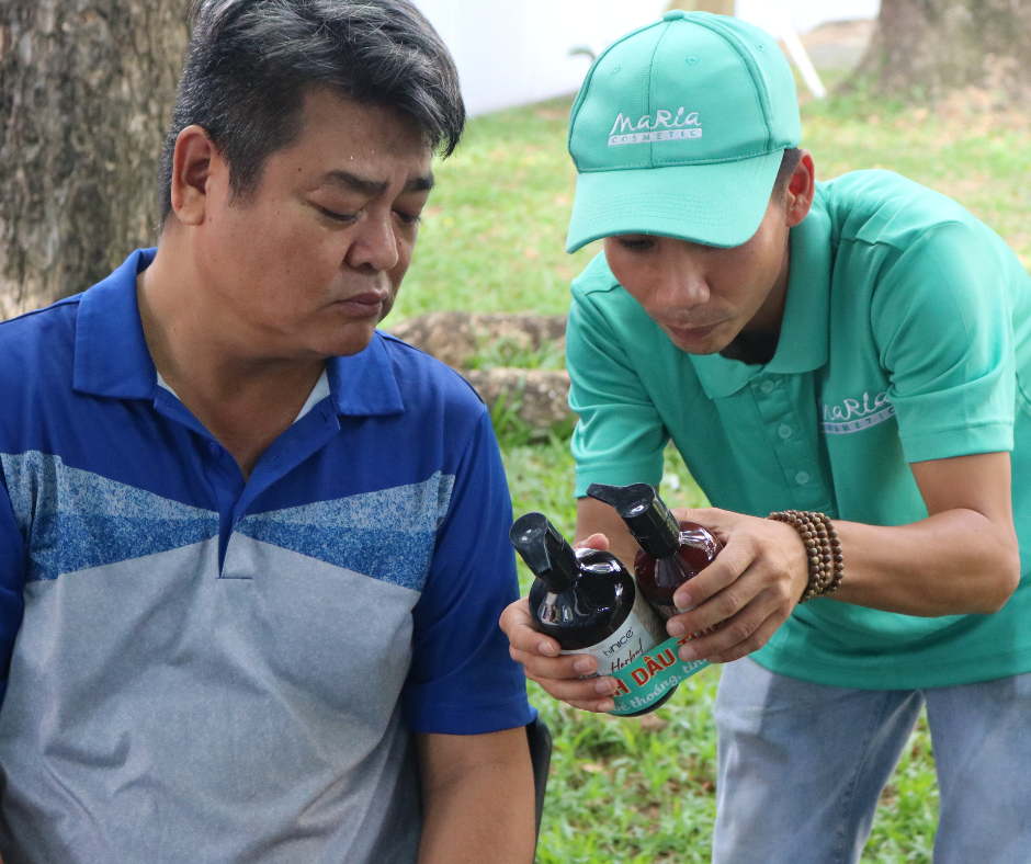 Một khách hàng nam chọn mua bộ gội-xả hiNICE tinh dầu thảo dược.